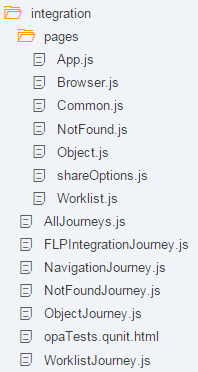 The integration folder contains the OPA tests of your application. We decided to separate our unit and integration tests, since the execution time of the integration tests is much longer. While the unit tests run in less than 10 seconds, the integration tests run for over 2 minutes. These times will vary a lot depending on the size of your project. If the project grows and grows, the difference in the execution time will also grow. For this reason, we recommend making both kind of tests separately executable so that developers can choose which sets of tests they want to run during design time.