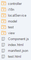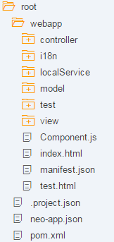 Aside from the test folder, the webapp folder contains 3 folders related to the MVC (model, view, controller) pattern used in SAPUI5, as well as a localization folder and a local-services folder used for emulating OData services. Each of these folders is outlined below.