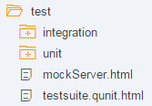The test folder contains three sets of files: files related to unit tests, files related to integration tests, and html files for either launching the tests or for testing the application manually. Inside the unit folder, the structure of the webapp folder is replicated for the files that are being tested.
