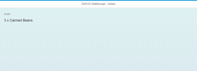 #!xml<mvc:View controllerName="sap.ui.demo.wt.controller.Detail" xmlns="sap.m" xmlns:mvc="sap.ui.core.mvc"> <Page title="{i18n>detailPageTitle}"> <ObjectHeader intro="{invoice>ShipperName}" title="{invoice>ProductName}"/> </Page> </mvc:View>