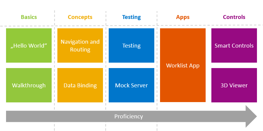 After that, you can proceed with the other tutorials that build up on that knowledge and go into more detail on specific topics like data binding, navigation and routing, using smart controls.