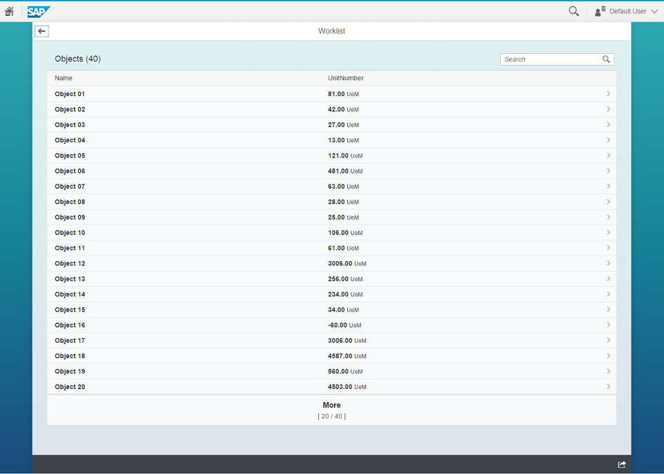 A worklist displays a collection of items to be processed by the user and usually involves reviewing details of a list item and taking action. If the data needs to be organized into columns or the overview of the items is more important than showing the item details directly, this template can be used as a starting point. For more information about worklist floorplans, see the Related Information section at the bottom of this topic.