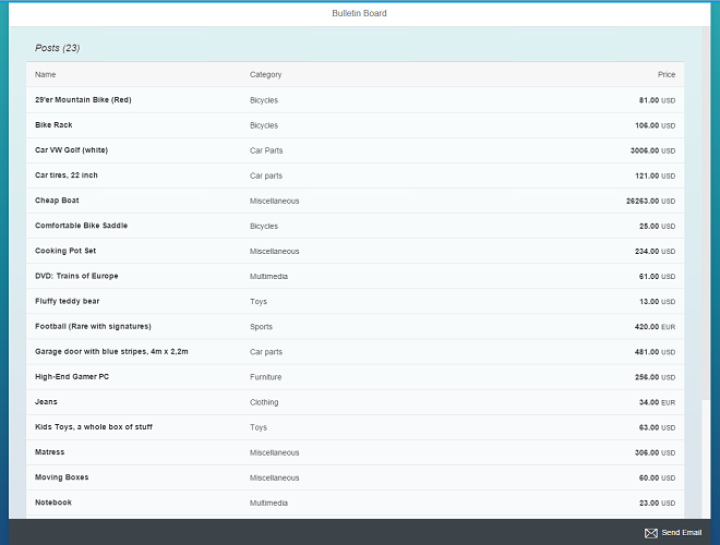 A post consists of typical properties like Title, Description, and Price. Each post is assigned to a Category and a Contact. The entity can be identified with its ID property: PostID. The corresponding EntitySet is Posts. The actual test data containing several mocked posts is located in the webapp/test/service/posts.json file.