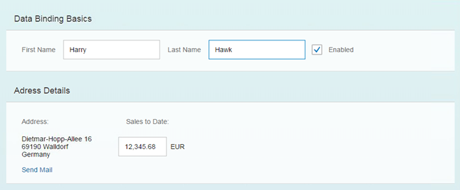SAPUI5 provides a set of simple data types such as Boolean, Currency, Date and Float. These data types can then be applied to controls in order to ensure that the value presented on the screen is formatted correctly, and, if the field is open for input, that the value entered by the user adheres to the requirements of that data type. We will now add a new field called Sales to Date of type Currency.