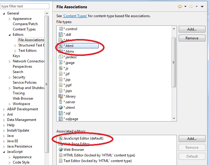 Make sure that you have added the JavaScript Editor to the File Associations under Start of the navigation pathGeneral Next navigation step Editors Next navigation step File AssociationsEnd of the navigation path: