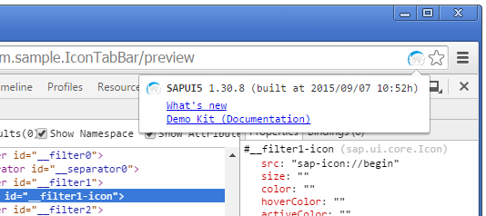 Once installed, the UI5 Inspector is available in Chrome DevTools (by choosing F12). It becomes active when an SAPUI5 app is loaded.