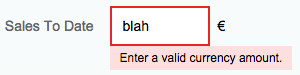 You can now enter a non-numeric value into the Sales To Date field and either press Enter or move the focus to a different UI control. This action triggers either the onenter or onchange event and then SAPUI5 executes the validation function belonging to the sap.ui.model.type.Currency data type.