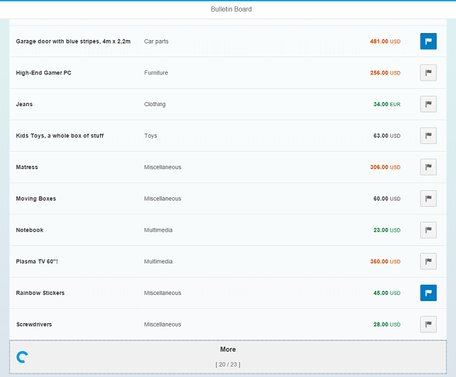 Let’s switch back to developing and add the missing feature for the test we implemented in the previous step. We will simply change the table to a growing table as this is a basic feature of the table. This will display a trigger at the end of the table that the user can click on to display more items.
