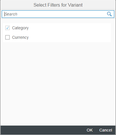 When selecting the currency as an additional filter field for the table query and pressing OK, you can now select Currency as an additional field in the filter bar of the first dialog: