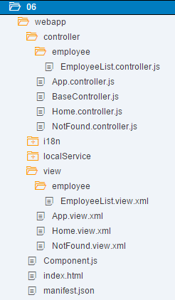 Finally, we will add a new controller. Create a subfolder employee inside webapp/controller folder and place the file EmployeeList.controller.js there. As you can see, the folder structure of the controllers is in sync with the folder structure of the views.