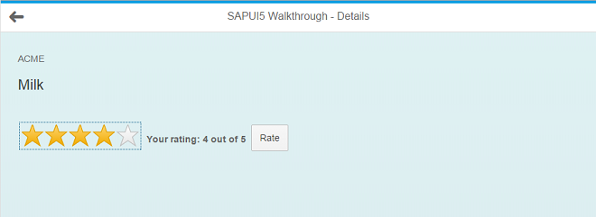 In this step, we are going to extend the functionality of SAPUI5 with a custom control. We want to rate the product shown on the detail page, so we create a composition of multiple standard controls using the SAPUI5 extension mechanism and add some glue code to make them work nicely together. This way, we can reuse the control across the app and keep all related functionality in one module.