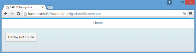 </mvc:View>We start by changing the Button control from the home view. When the button is pressed the onDisplayNotFound handler is called.